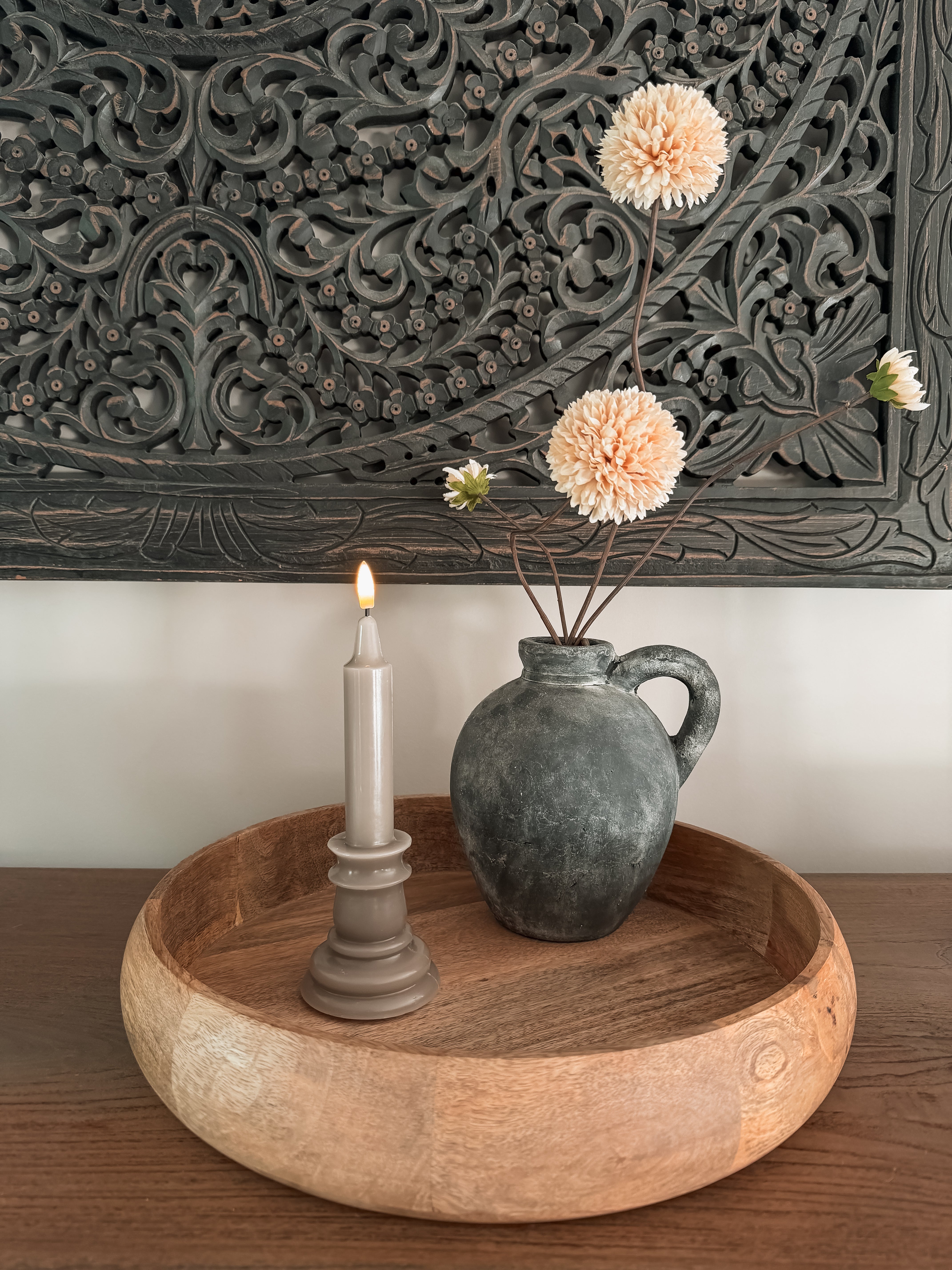De kandelaar LED kaars is verkrijgbaar in 3 maten S-M-L en in onze twee kleuren beige en taupe.