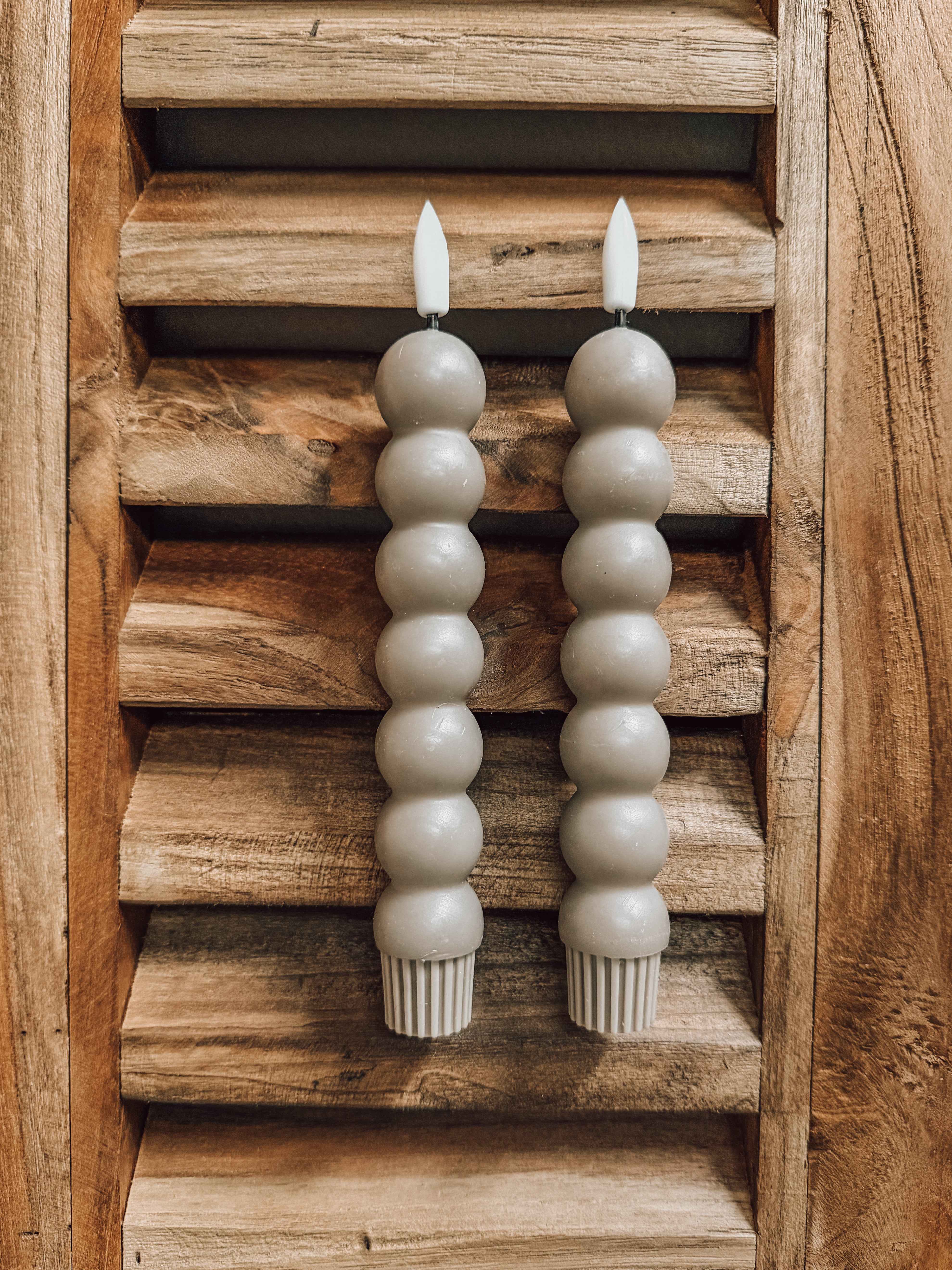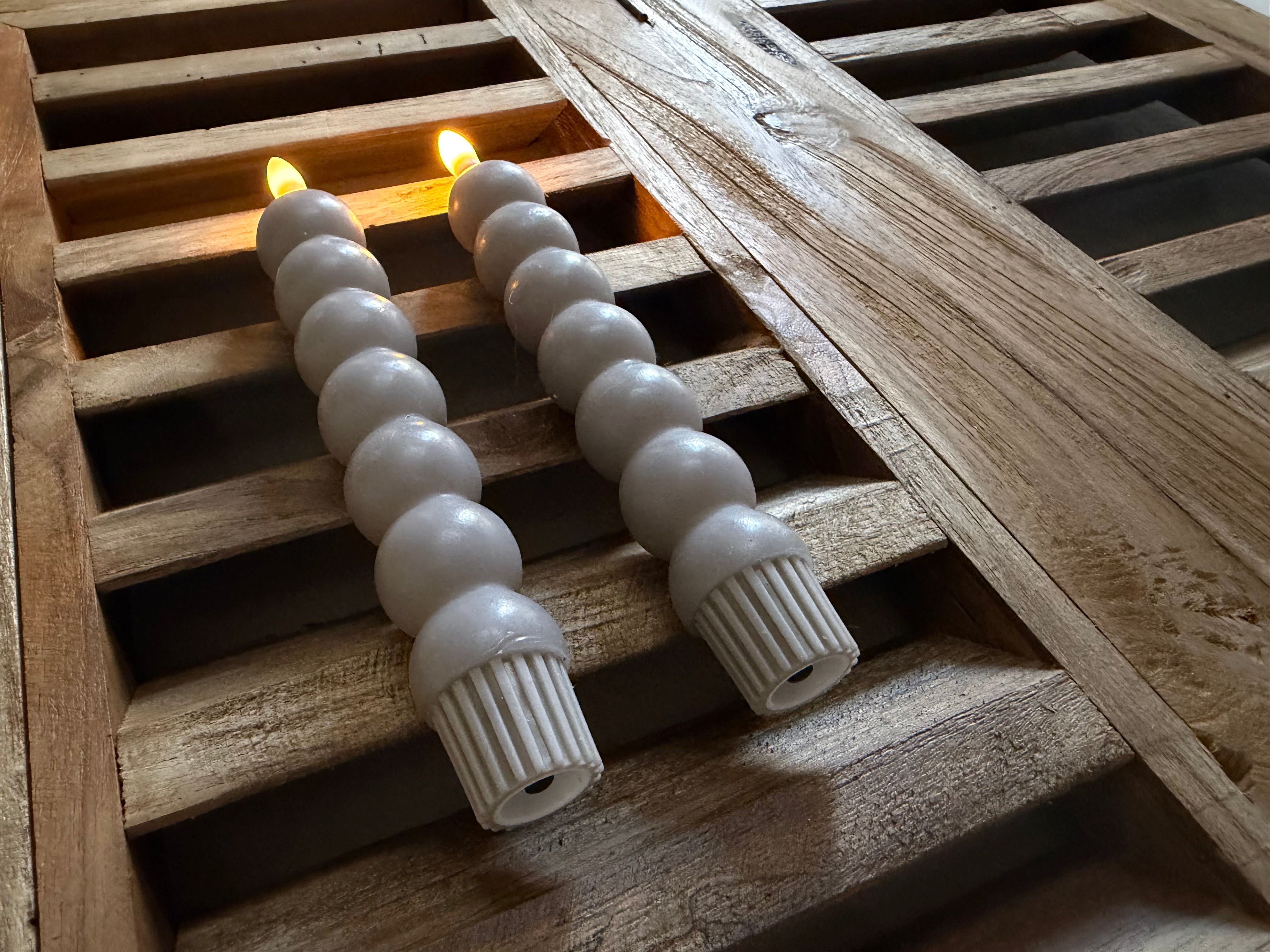De diner LED kaars is verkrijgbaar in 2 maten kort-lang en in onze twee kleuren beige en taupe.